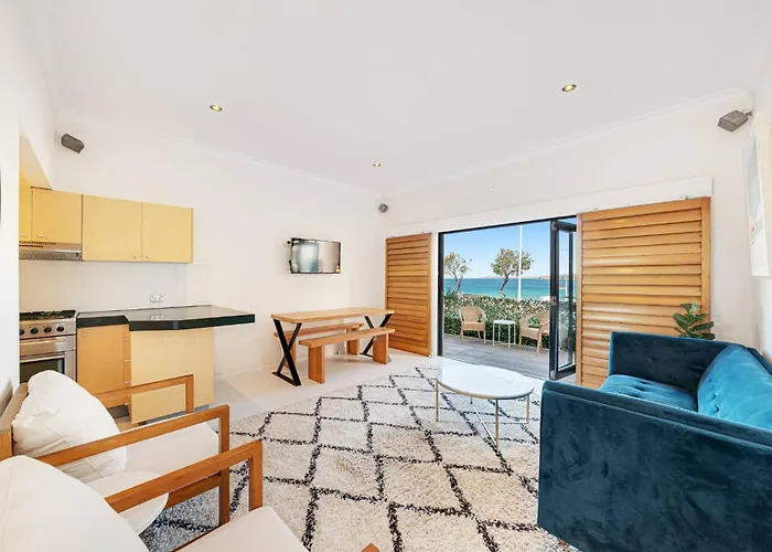 Das Apartment The Retreat : Beachfront View + Parking Sydney befindet sich in der Nähe von verschiedenen Attraktionen der Stadt: Connetts Corner Store liegt unter anderem circa 5 Minuten von hier entfernt. Diese Apartments mit einer Terrasse befindet sich in ungefähr 500 Meter Entfernung vom Bondi Pavilion.